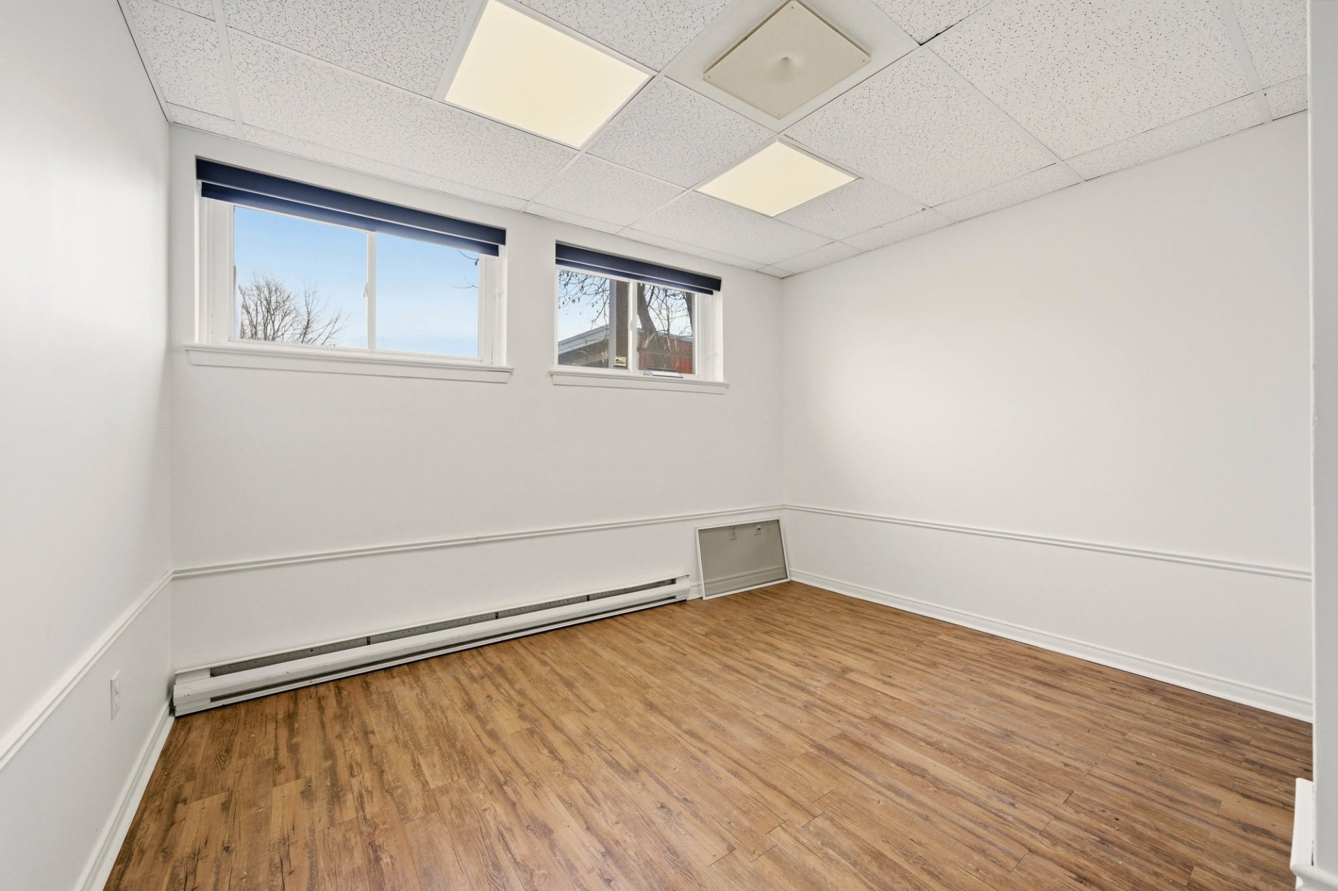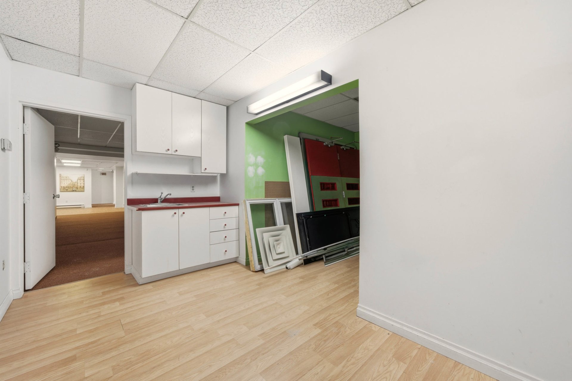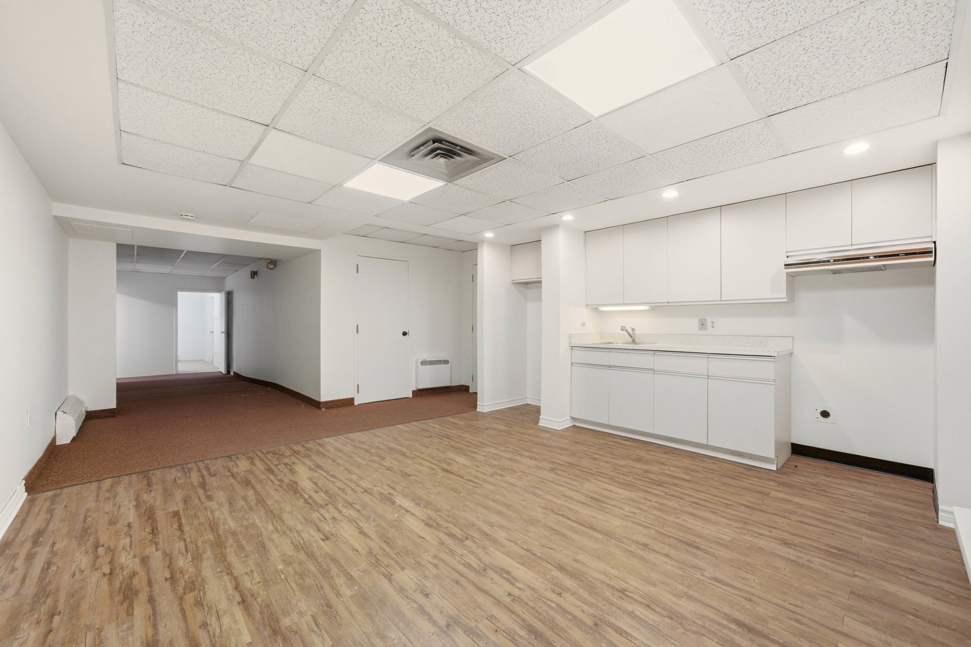Commercial space for rent of approximately 1,500 sq ft (139.35 sq m) located at 71 Church Street, Unit 1 in Windsor. This space offers flexible layout suitable for various types of commercial or professional activities. The tenant can lease a portion of approximately 1,500 sq ft or the entire basement of approximately 2,500 sq ft, depending on their needs. The layout includes several rooms suitable for offices, an open-concept area, a kitchenette, and a washroom. Two outdoor parking spaces are included. Conveniently located near the industrial park and services.