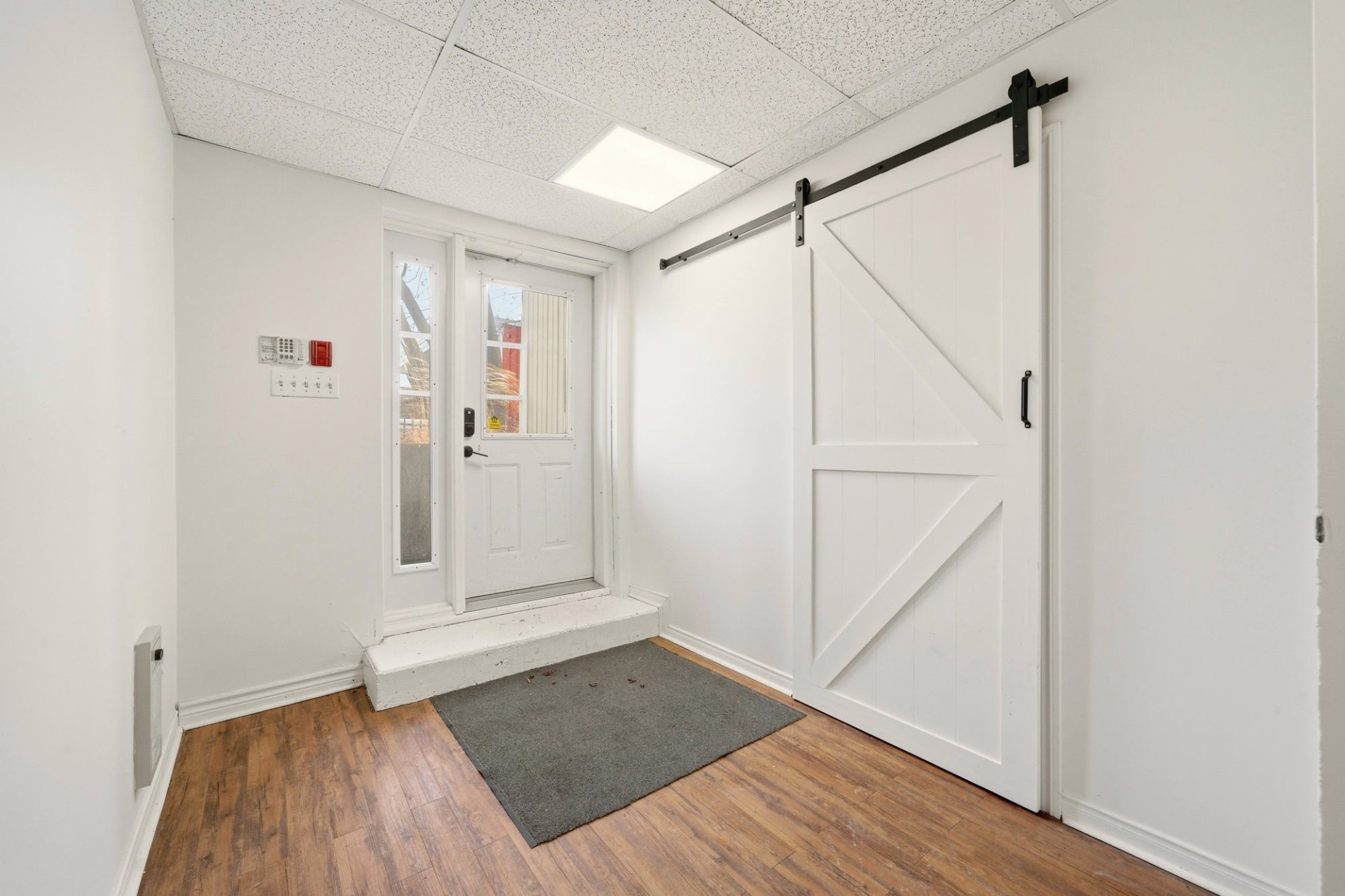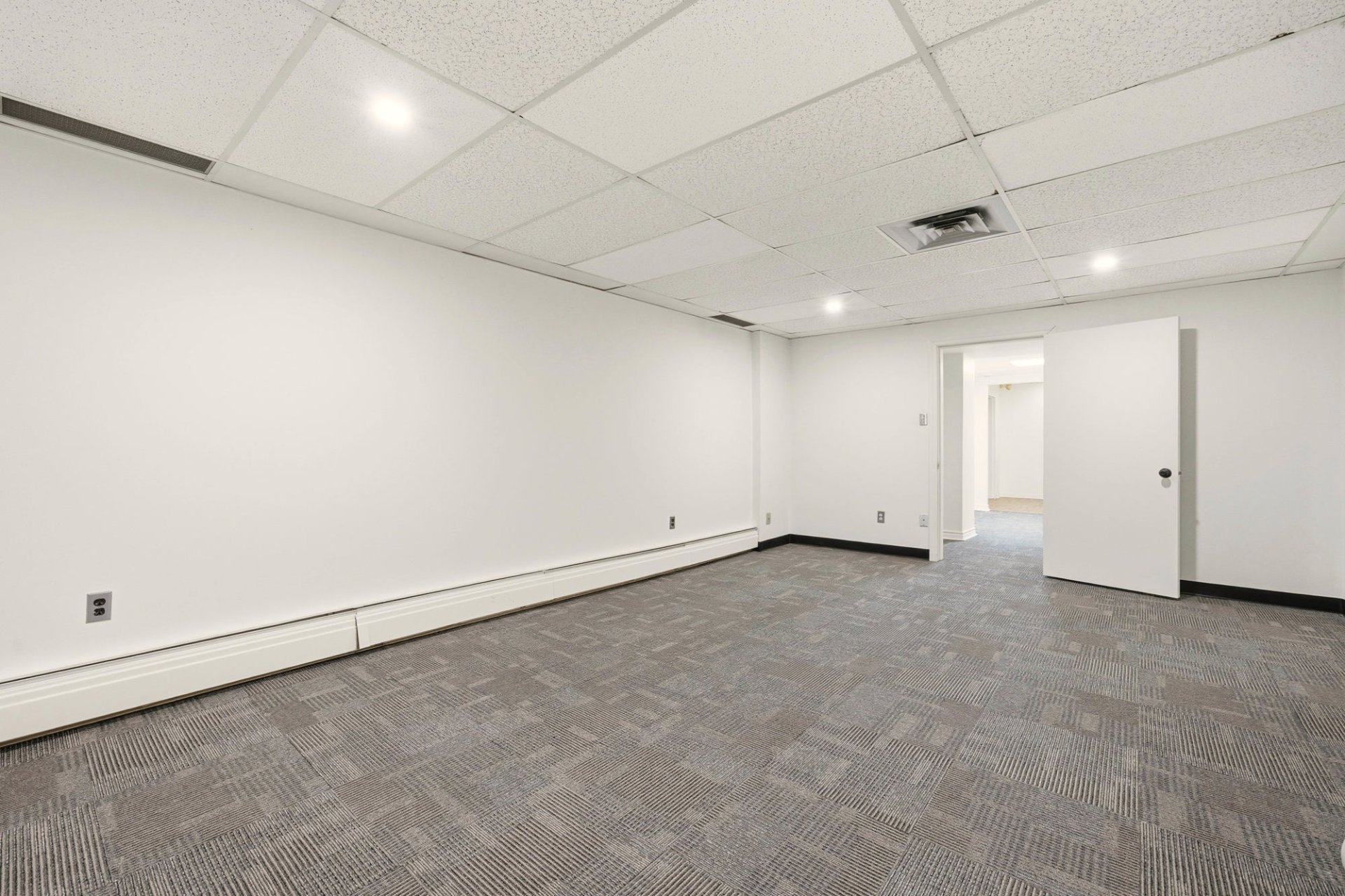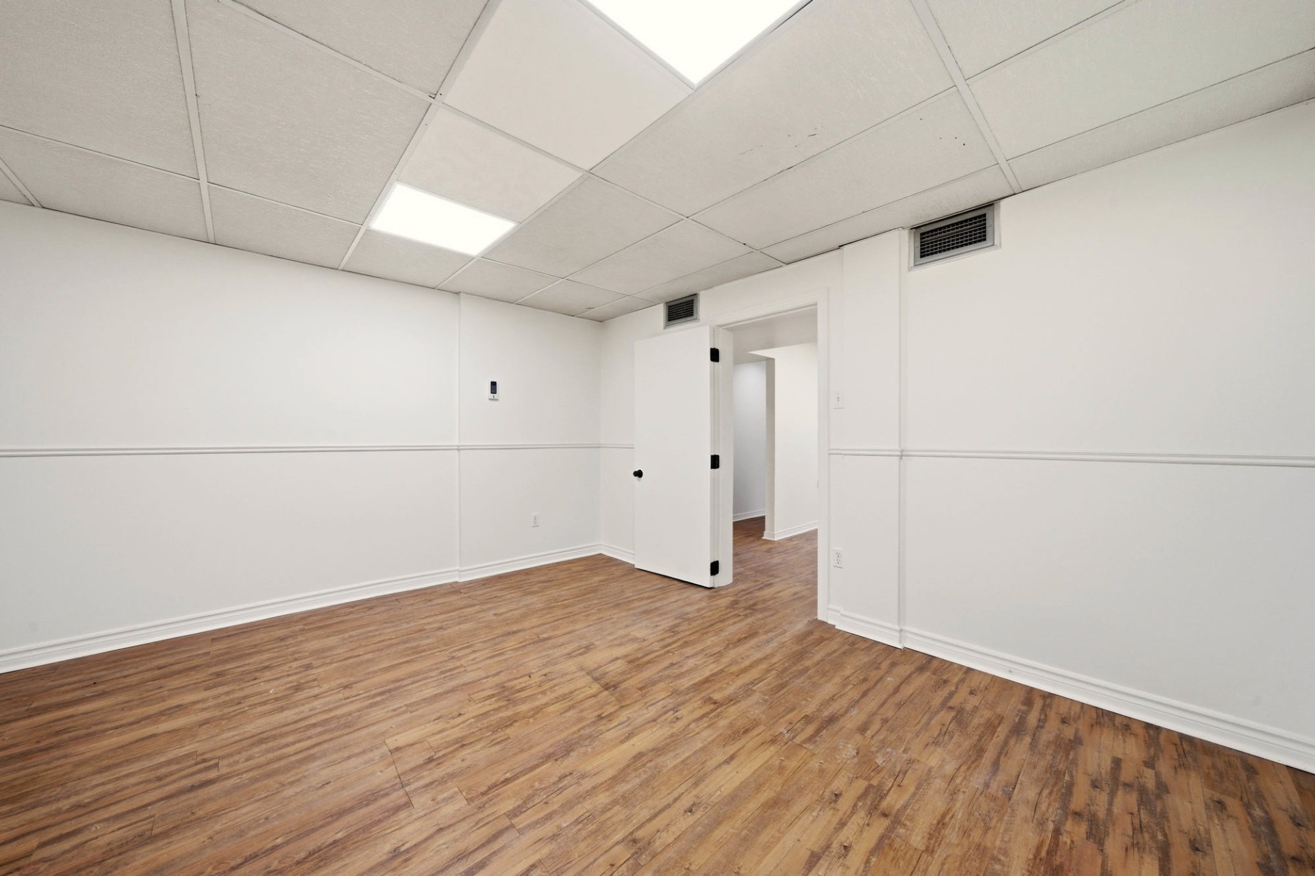 Commercial space for rent of approximately 1,500 sq ft (139.35 sq m) located at 71 Church Street, Unit 1 in Windsor. This space offers flexible layout suitable for various types of commercial or professional activities. The tenant can lease a portion of approximately 1,500 sq ft or the entire basement of approximately 2,500 sq ft, depending on their needs. The layout includes several rooms suitable for offices, an open-concept area, a kitchenette, and a washroom. Two outdoor parking spaces are included. Conveniently located near the industrial park and services.