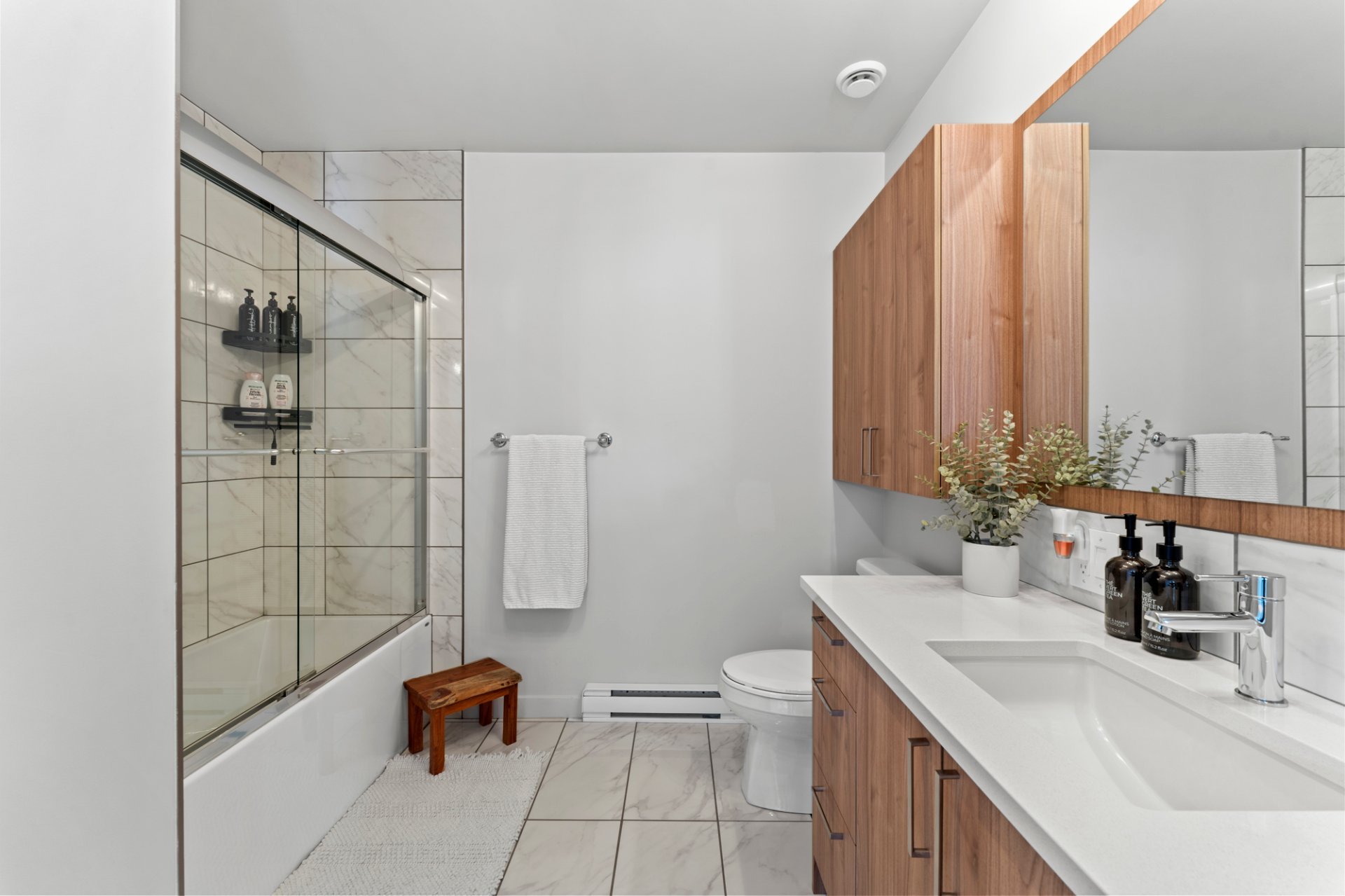 Both bathrooms are finished with modern and elegant