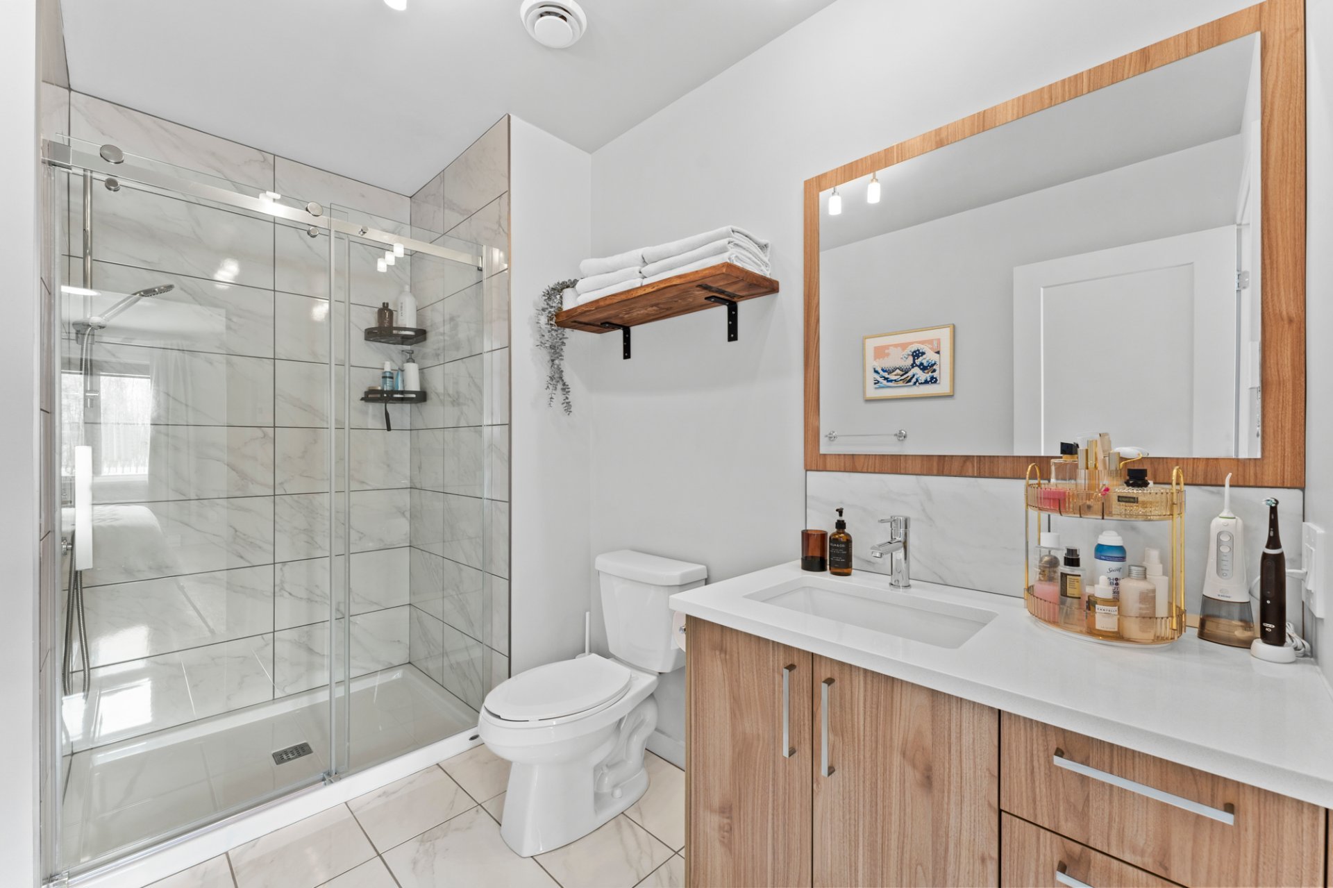 tiles, while the other has a shower-bath combination, ideal